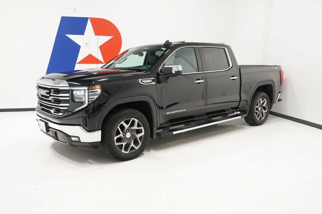 10-Speed Automatic, Jet Black Leather.High Capacity Suspension Package, Preferred Equipment Group 4SA (120-Volt Bed Mounted Power Outlet, 120-Volt Instrument Panel Power Outlet, 170 Amp Alternator, 2 Charge/Data USB Ports, 2 Type-C Charge-Only Rear USB Ports, 6-Speaker Audio System Feature, Auto-Locking Rear Differential, Auxiliary External Transmission Oil Cooler, Chrome Header & Chrome Grille Insert Bars, Color-Keyed Carpeting Floor Covering, Compass, Deep-Tinted Glass, Electric Rear-Window Defogger, Electrical Steering Column Lock, Front Frame-Mounted Black Recovery Hooks, Front Rainsensing Wipers, GMC Connected Access Capable, HD Rear Vision Camera, Heated Steering Wheel, Keyless Open & Start, LED Cargo Area Lighting, Manual Tilt-Wheel & Telescoping Steering Column, OnStar & GMC Connected Services Capable, Perimeter Lighting, Power Door Locks, Power Front Passenger Windows w/Express Up/Down, Power Front Windows w/Driver Express Up/Down, Power Rear Windows w/Express Down, Push Button Start, Rear Wheelhouse Liners, Remote Vehicle Starter System, SiriusXM w/360L, Steering Wheel Audio Controls, Theft Deterrent System (Unauthorized Entry), Wi-Fi Hotspot Capable, and Wireless Phone Projection), ProGrade Trailering System (Hitch Guidance w/Hitch View, In-Vehicle Trailering App, and Integrated Trailer Brake Controller), Sierra Safety Plus Package (HD Surround Vision, Rear Cross Traffic Braking, Rear Pedestrian Detection, Safety Alert Seat, Trailer Camera Provisions, Trailer Side Blind Zone Alert, and Ultrasonic Front & Rear Park Assist), SLT Convenience Package (2 Charge/Data USB Ports Inside Center Console, Electronic Precision Shift, Floor-Mounted Center Console, Front Bucket Seats, Power Rake & Telescoping Steering Column, Premium Bose 7-Speaker Sound System, Ventilated Driver & Front Passenger Seats, and Wireless Charging), SLT Preferred Package (Adaptive Cruise Control, Heated 2nd Row Outboard Seats, Power Sliding Rear Window w/Rear Defogger, and Universal Home Remote), Standard Suspension Package, Texas Edition SLT Premium Plus Package (20" Polished Aluminum Wheels, Chrome Wheel To Wheel Assist Steps, Spray-On Pickup Bed Liner w/GMC Logo, and Texas Edition Badging), Trailering Package (Hitch Guidance), 10-Speed Automatic, Jet Black Leather, 10-Way Power Driver Seat Adjuster w/Lumbar, 10-Way Power Passenger Seat Adjuster w/Lumbar, 3 Years of OnStar & Connected Services Plan, 3.23 Rear Axle Ratio, 4-Wheel Disc Brakes, 6 Speakers, ABS brakes, Air Conditioning, Alloy wheels, AM/FM radio: SiriusXM with 360L, Apple CarPlay/Android Auto, Auto High-beam Headlights, Auto-dimming door mirrors, Auto-dimming Rear-View mirror, Automatic Emergency Braking, Automatic temperature control, Brake assist, Buckle to Drive, Bumpers: chrome, Delay-off headlights, Driver door bin, Driver Memory, Driver vanity mirror, Dual front impact airbags, Dual front side impact airbags, Electronic Stability Control, Emergency communication system: OnStar and GMC Connected Services capable, Exterior Parking Camera Rear, Following Distance Indicator, Forward Collision Alert, Front 40/20/40 Split-Bench Seat, Front anti-roll bar, Front Center Armrest w/Storage, Front dual zone A/C, Front fog lights, Front License Plate Kit, Front Pedestrian Braking, Front reading lights, Front wheel independent suspension, Fully automatic headlights, Heated door mirrors, Heated Driver & Front Outboard Passenger Seating, Heated front seats, Heated steering wheel, Illuminated entry, IntelliBeam Automatic High Beam On/Off, Lane Keep Assist w/Lane Departure Warning, Low tire pressure warning, Memory seat, Navigation System, Not Equip w/Heat & Vent Seat Cushion Blower Motor, Not Equipped w/Steering Column Lock, Occupant sensing airbag, Outside temperature display, Overhead airbag, Overhead console, Panic alarm, Passenger door bin, Passenger vanity mirror, Perf Leather-Appointed Front Outboard Seat Trim, Power door mirrors, Power driver seat, Power passenger seat, Power steering, Pow